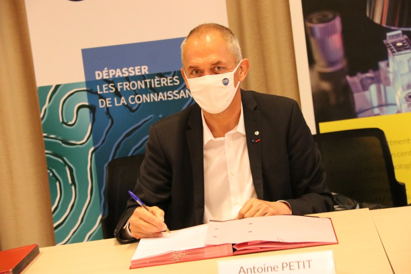 Marie-Guite Dufay, présidente de la Région Bourgogne-Franche-Comté, et Antoine Petit, président-directeur général du CNRS, ont signé ce mercredi 19 mai 2021 à Besançon un protocole de coopération à l’institut FEMTO-ST.